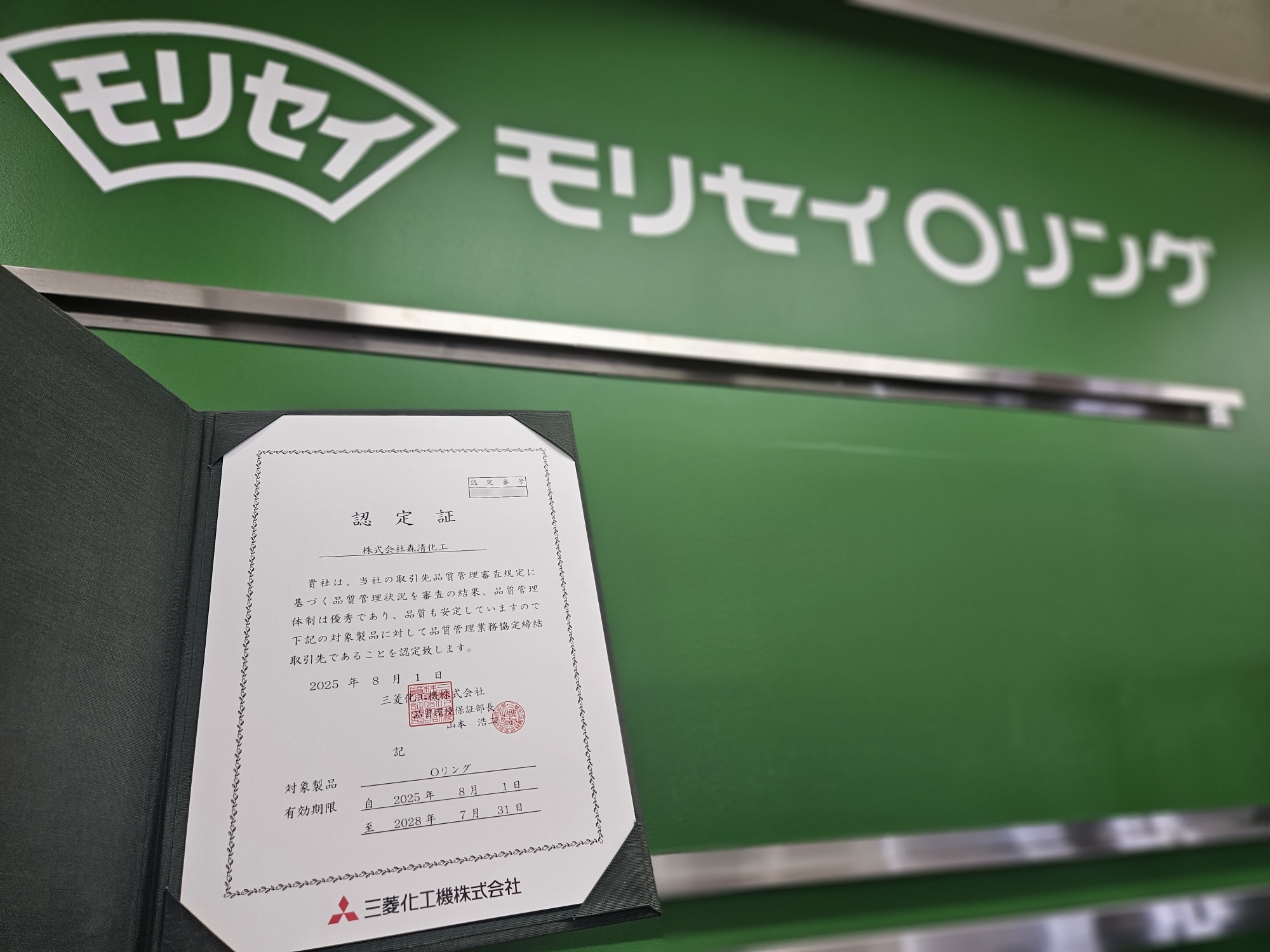 8月1日:三菱化工機株式会社様より認定証授与