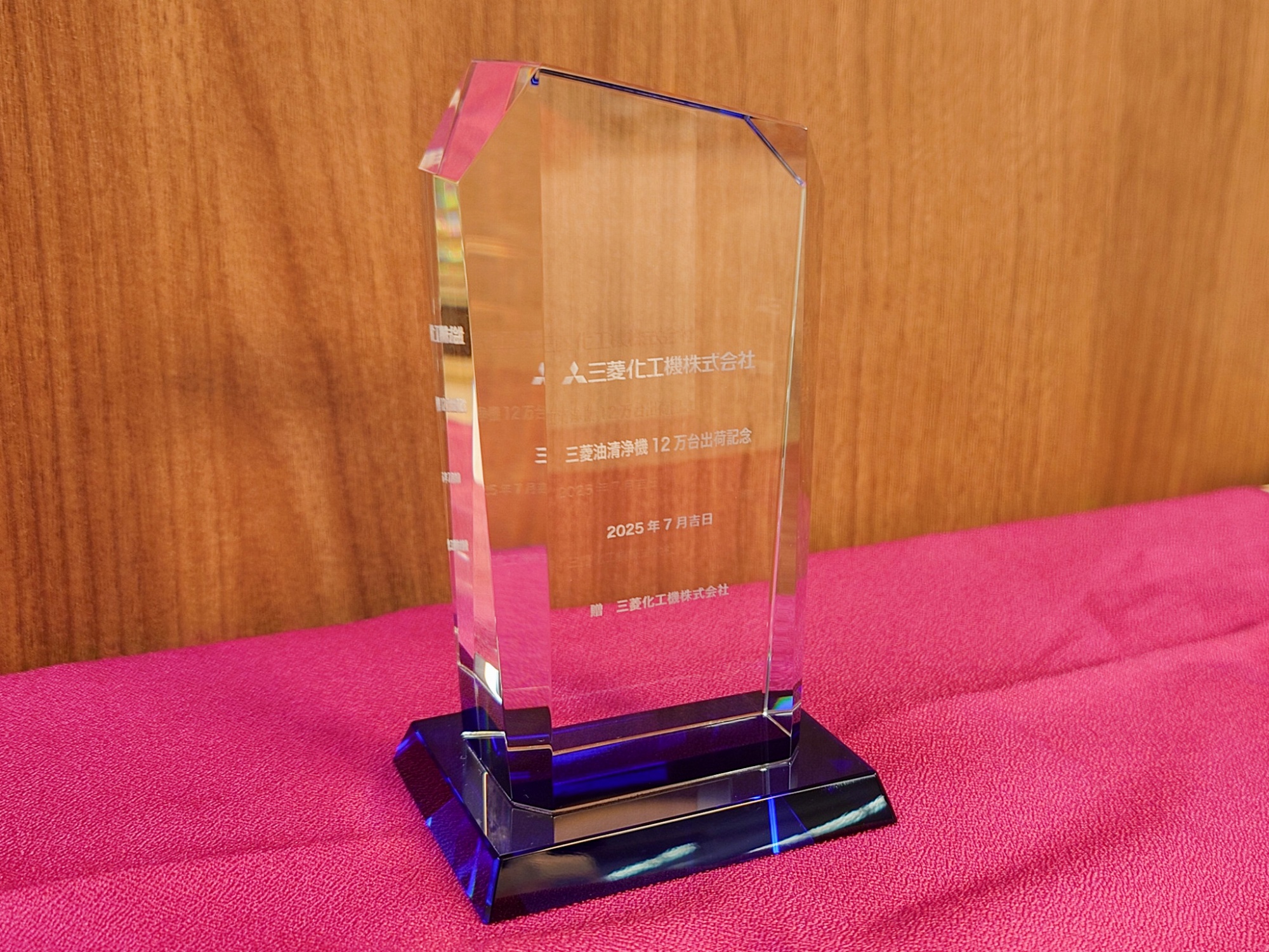 三菱化工機株式会社様より、三菱油清浄機の「12万台出荷記念」の盾を頂戴いたしました。